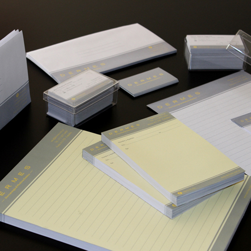 Diseño de banners, papelería comercial, y etiquetas para colgar impresas en cartulina reciclada de 300grs.