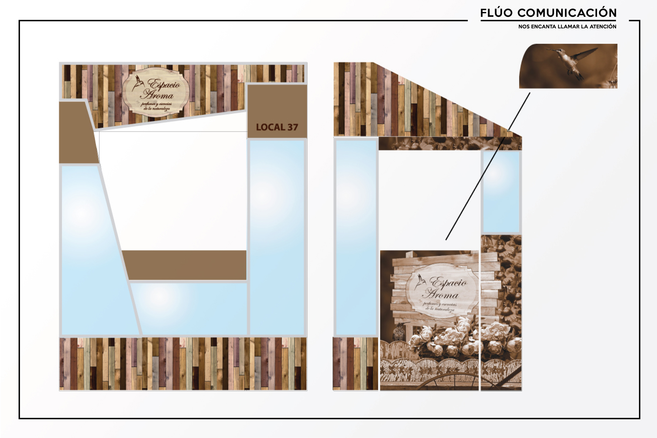 Diseño y armado de stand en melamina de 18mm color arcilla y colocación de vinilo mate de decoración